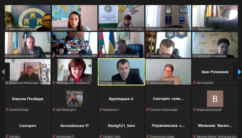 18 жовтня відбулося засідання голів громад-членів Асоціації міст України в Хмельницькій області. Долучилося до участі в ньому 42 учасники: представники міських, селищних, сільських рад та управління Пенсійного фонду України в Хмельницькій області. Обговорили питання опалювального сезону, роботи критичної інфраструктури за надзвичайних ситуацій, формування бюджетів та співпраці з Пенсійним фондом.
