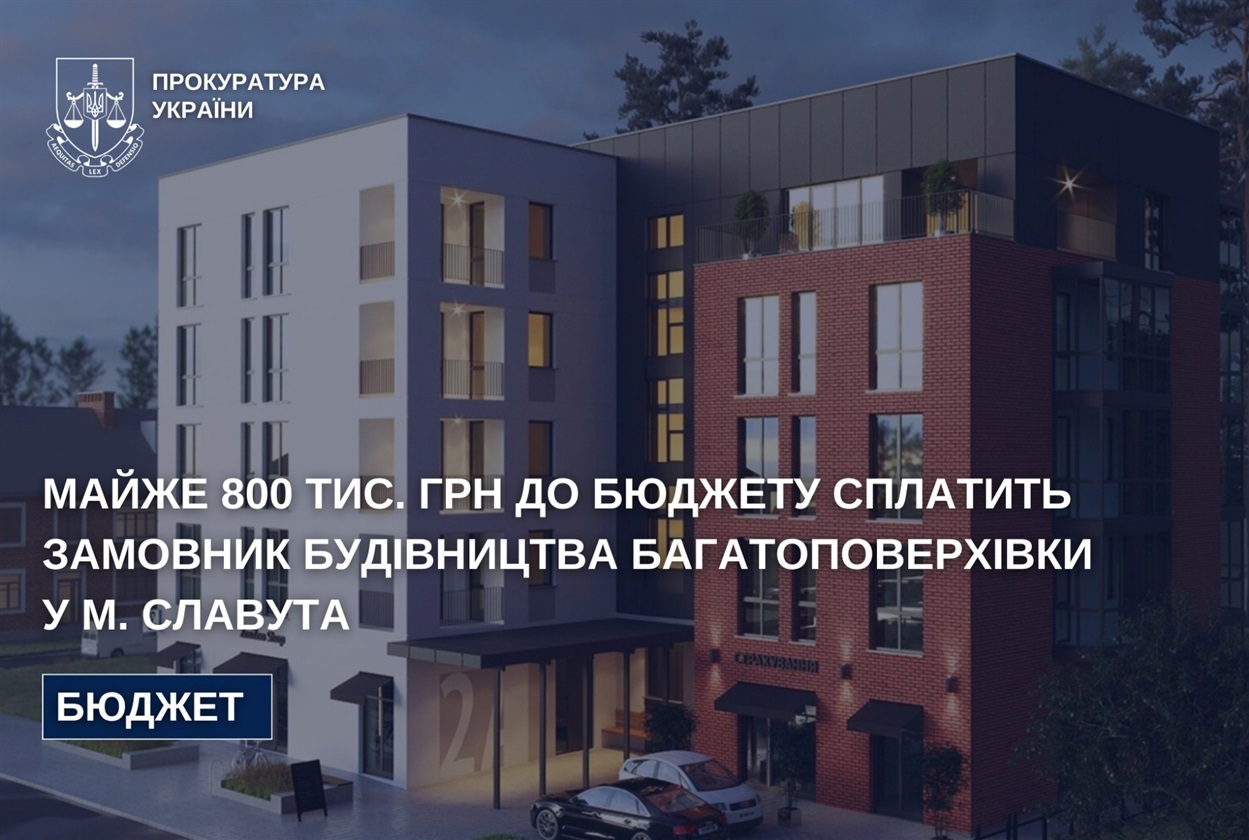 Прокурори встановили, що з 2019 по 2023 роки житлово-будівельним кооперативом здійснено будівництво багатоквартирного житлового будинку в місті Славуті. Проте, замовник будівництва добровільно не сплатив до місцевого бюджету внесок пайової участі для розвитку інфраструктури населеного пункту.