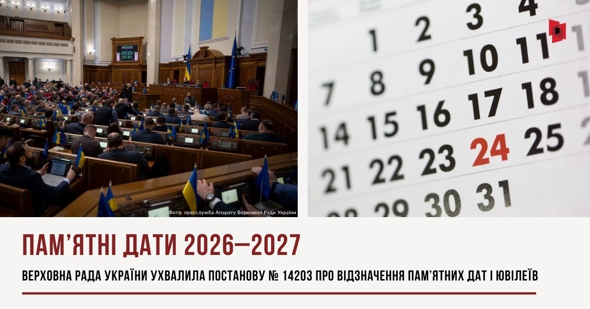 Серед визначних дат у 2026 році визначено такі: